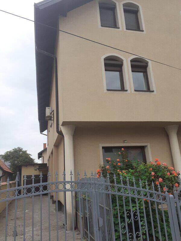 kuća 450 m2 a plac 600 m2,prizemlje,2 sprata i potkrovlje,kuća je podeljena na 5 stanova sa zasebnim ulazima,2 garsonjere po 35 m2,1 stan od 75 m2,2 stana po 150 m2,kuća ima i dve garaže,pečenjaru i sač,pekaru i sušnicu